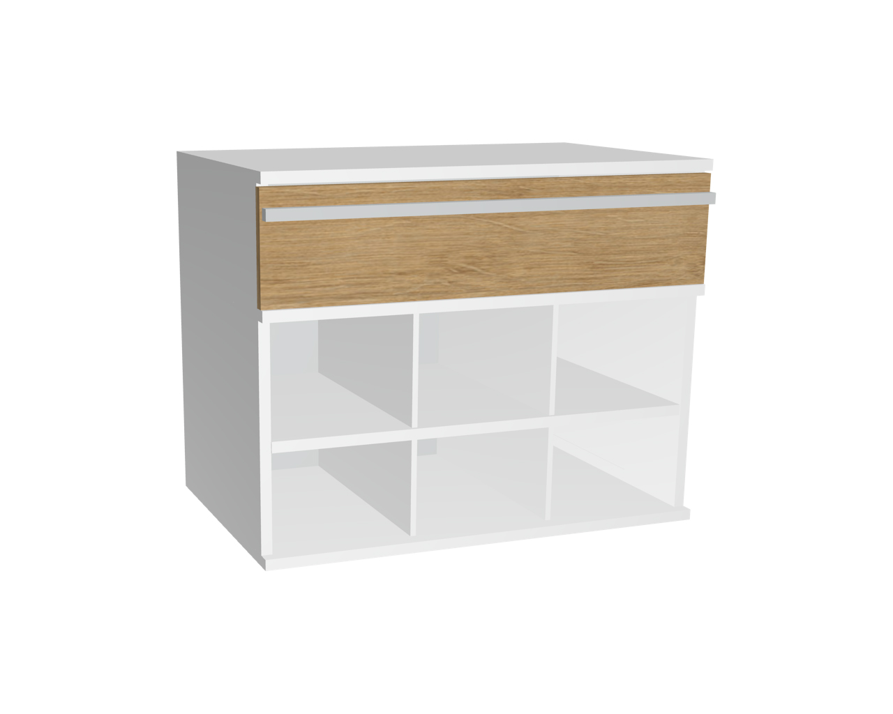 Die Facheinteilung lockert die Optik Ihres Schranksystems auf und rückt Ihre Accessoires und Kleidungsstücke besonders in den Vordergrund. Die Schublade ist mit edler Griffleiste aus Aluminium ausgestattet. Die hochwertige Melaminbeschichtung ist sehr widerstandsfähig gegen Gebrauchsspuren.