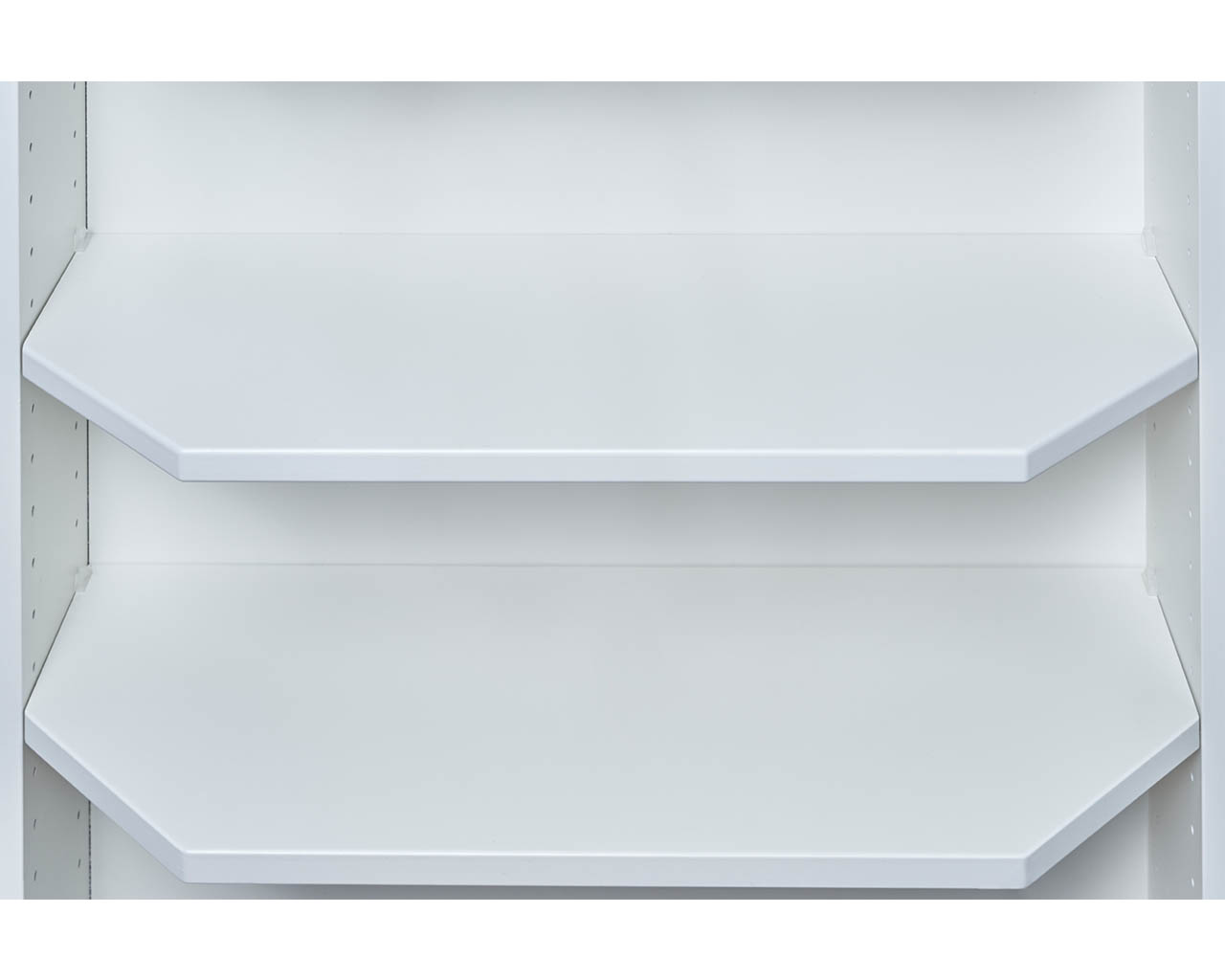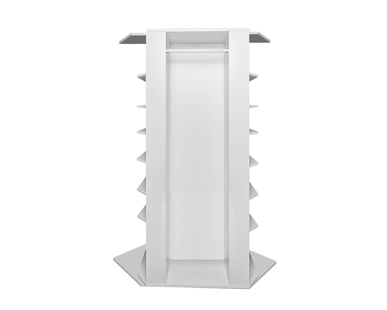 Für die beiden tiefen Seiten (49,5x36 cm) sind zwei Kleiderstangen im Lieferumfang enthalten. Optional können Sie das 360° Eckrondell mit Holz- und/oder Glasböden erweitern.