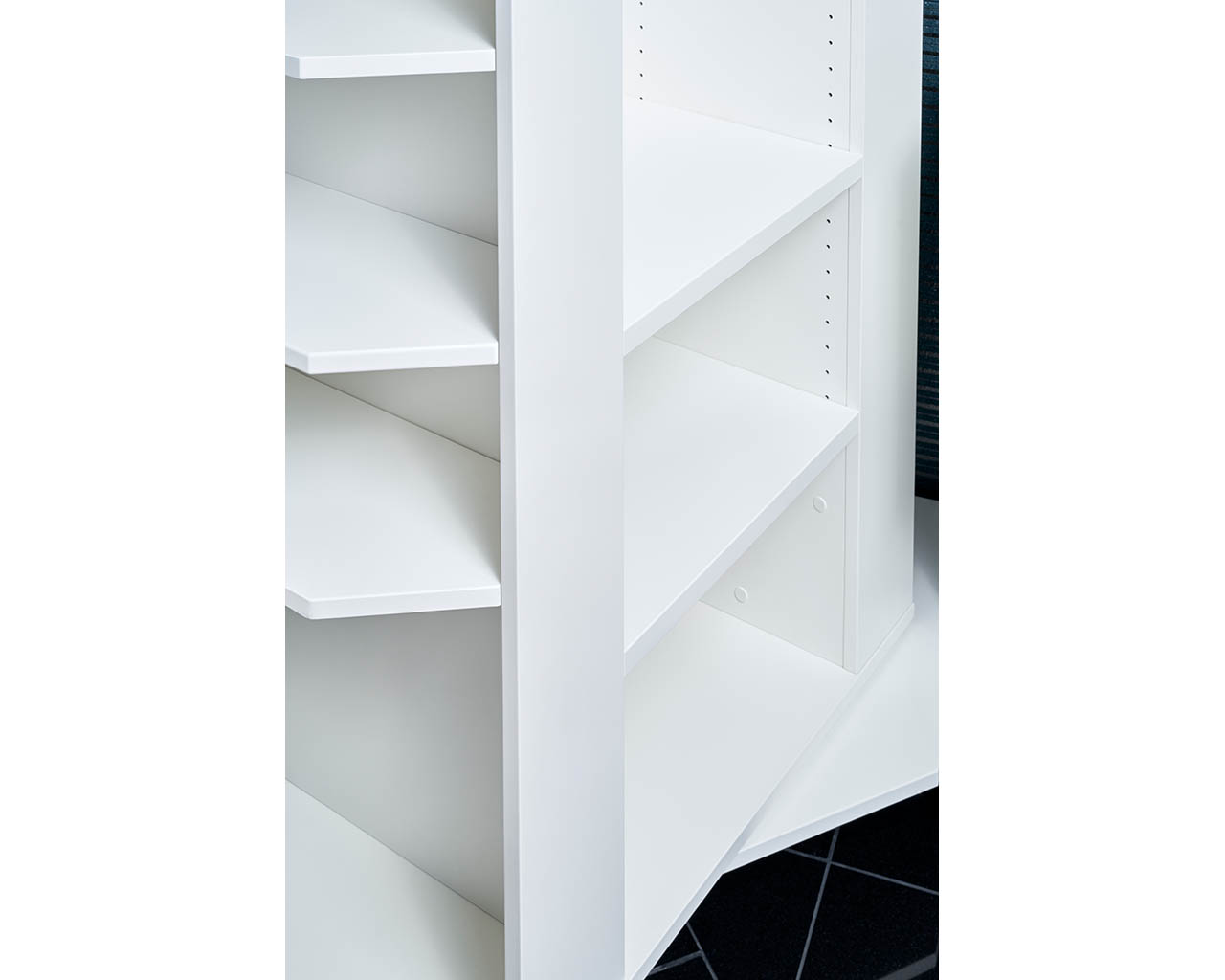 Beim nächsten Shoppen darf's ruhig ein Teil mehr sein! Denn unser 360° Eckrondell bietet fantastisch viel Stauraum und benötigt unglaublich wenig Platz.