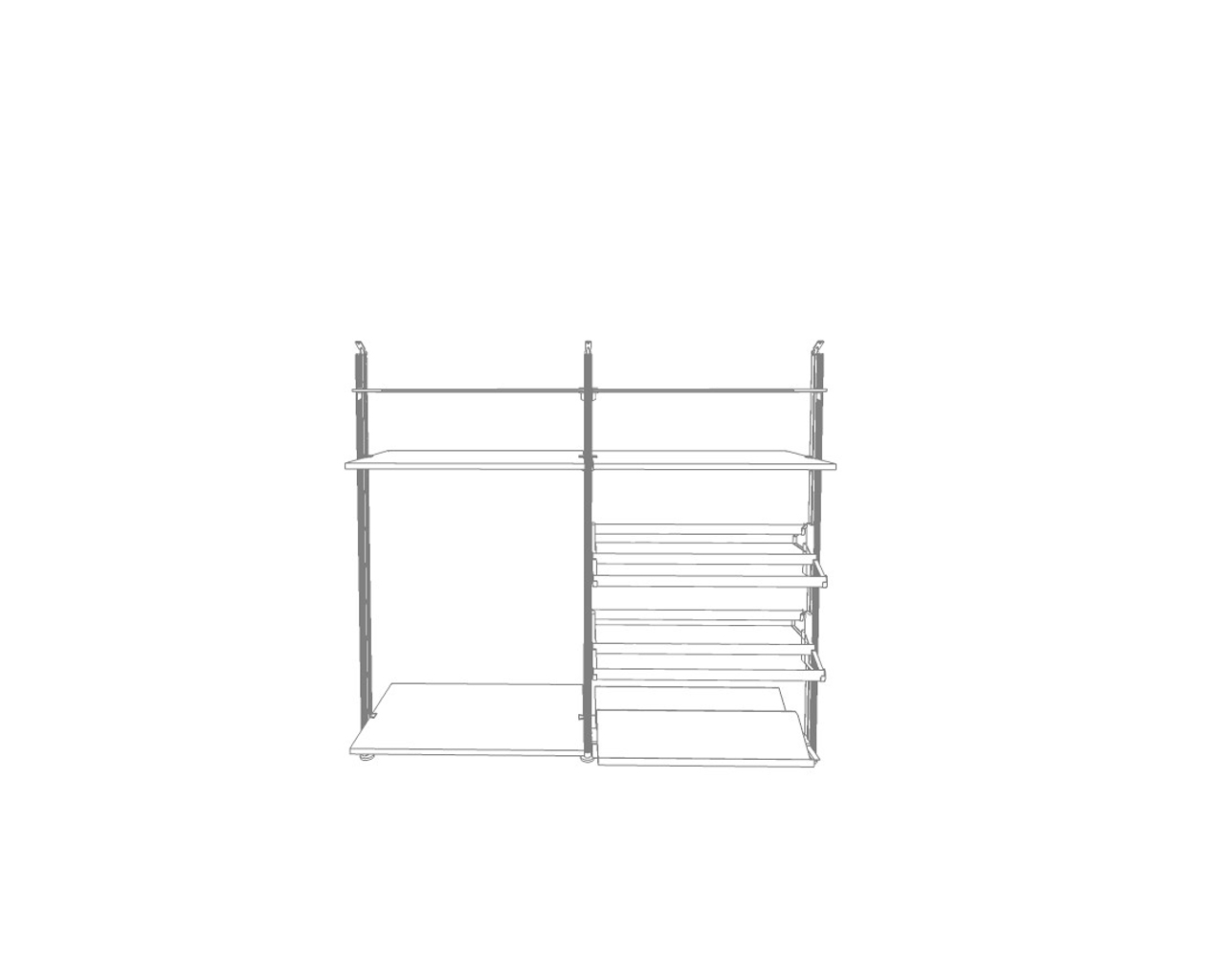 | Ablage für: | 4 Paar Schuhe pro Schuhträger und 8 Paar Schuhe pro Schuhablage, 9 Hosen (80 cm) |