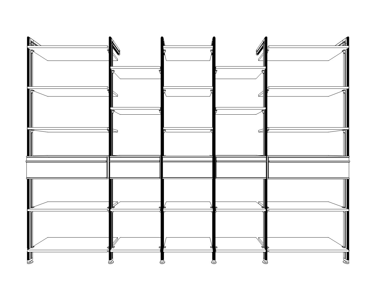 Diese Kombination lässt sich nach Ihrem persönlichen Geschmack individuell anpassen - egal ob als Bücherregal, Bürokombination oder als funktionelle Wohnwand. Die Funktionselemente wie Böden und Schränke lassen sich beliebig an den Trägerprofilen befestigen. Alle Schubkastenelemente sind mit hochwertigen Unterflurauszügen mit Selbsteinzug und Dämpfung ausgestattet.