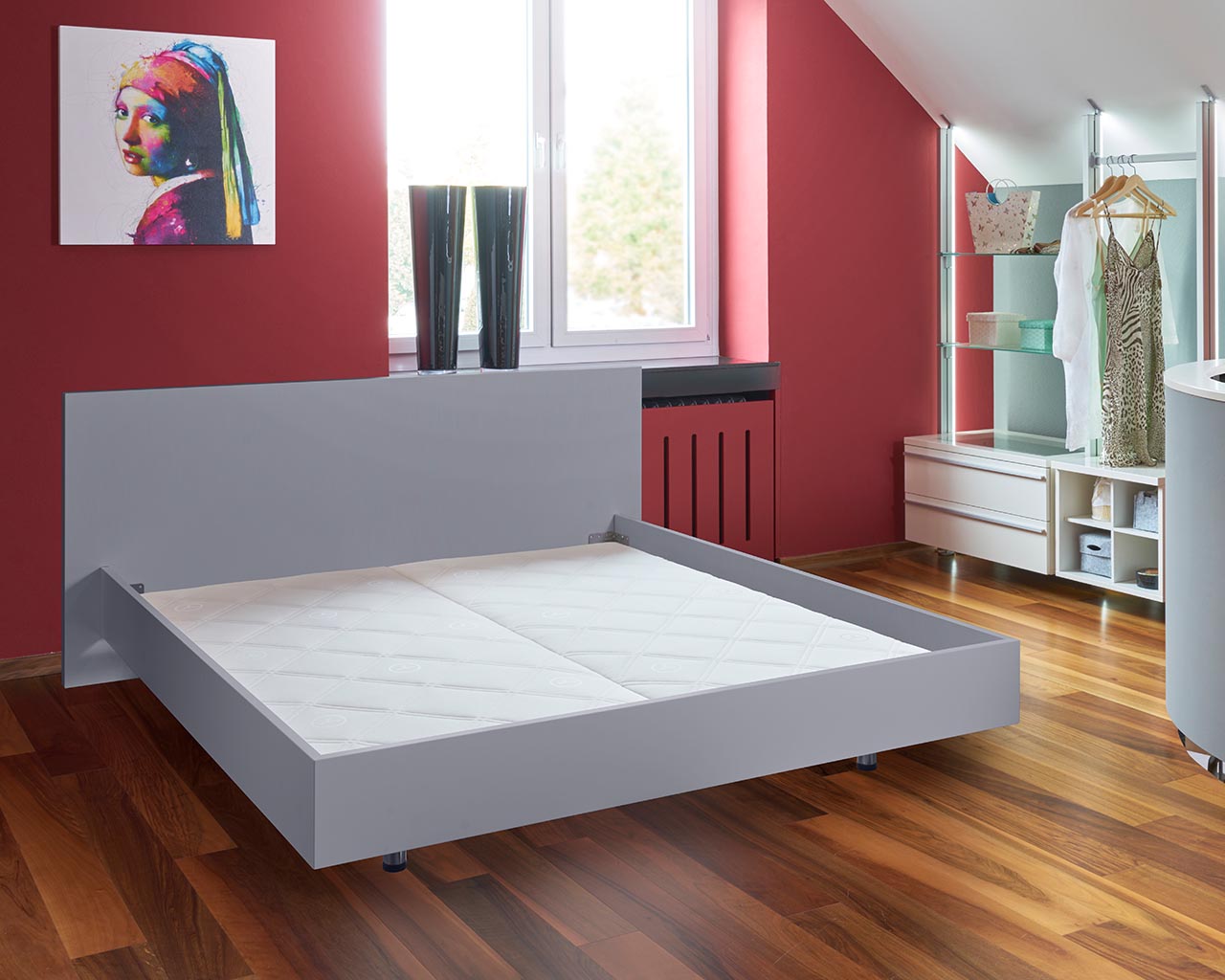 Mit unserem Designbett LACK schweben Sie wie auf Wolke 7. Der Bettrahmen besticht durch sein modernes und zeitloses Design. Der Eindruck des optischen Schwebens des Bettes entsteht durch die nach innen versetzten Bettfüße aus verchromtem Stahl in Edelstahloptik, die so positioniert sind, dass das Bett optimale Standfestigkeit hat. Designbett: Lieferung ohne Matratze, Rahmen und Deko.